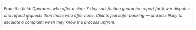 - Scheduling and cancellations — No-shows cost solo operators real money. A cancellation clause lets you charge without an argument.